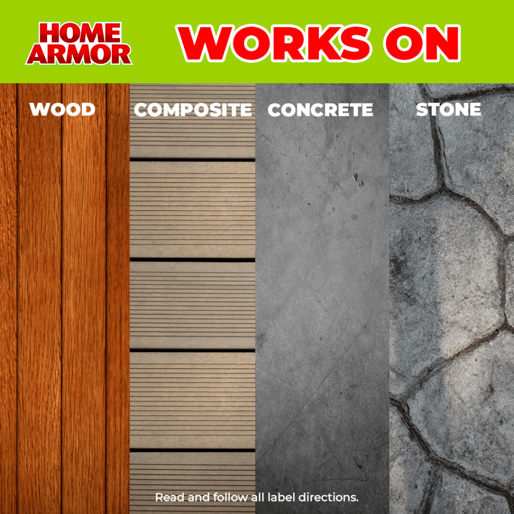IDEAL FOR USE ON wood and composite, concrete, and stone. Safe around plants when used as directed.